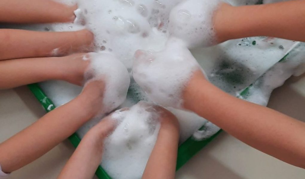 Pri lisičkah smo si zaželeli igre s peno. Vendar nismo šli v trgovino in jo kupili, temveč smo si jo pripravili kar sami. Pri igri smo zelo uživali in se zabavali, kar povedo tudi fotografije.   Zapisala: Mateja Urbančič