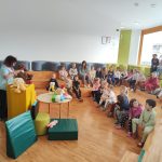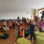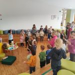 Dejavnosti je popestrila še z igrami masaže. Ob koncu pa so otroci prejeli žig in delovni list z labirintom, ki so ga z veseljem reševali.