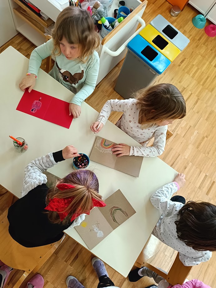 Naši otroci so z veliko mero ustvarjalnosti, drobnimi prstki in iskrenimi željami v srcu izdelali unikatne božično-novoletne voščilnice. Vsaka od njih nosi poseben pečat – odtis otroške dlani, kanček bleščic in ogromno prijaznih misli. Te pisane glasnike praznikov smo z velikim ponosom poslali učencem Osnovne šole Ljubo Šercer.