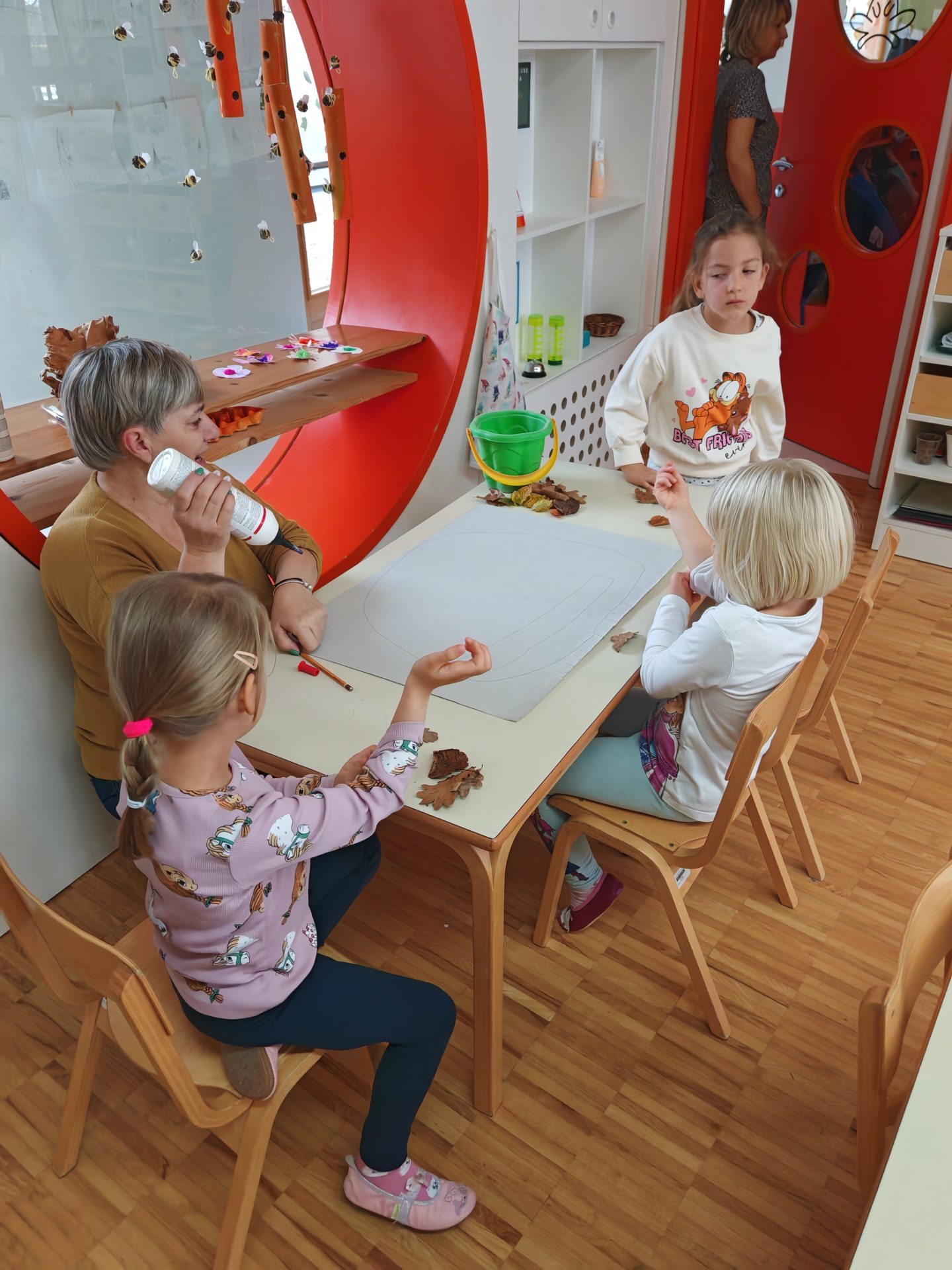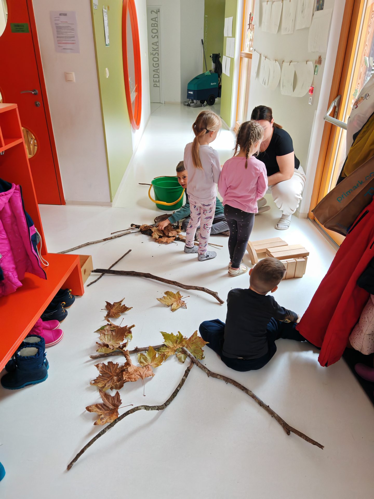 Otroci iz skupine Zajčki so dne 19.11 spoznavali dejavnosti, ki smo jih v okviru projekta Erasmus+ videli med sledenjem na delovnem mestu na francoskem Martiniku. V jutranjem krogu so opazovali jesensko listje ter se pogovarjali o njegovem nastanku, razkroju in pomenu trajnostnega ravnanja z naravnimi materiali. Po kotičkih so ustvarjali čebelji panj iz listja ter iz naravnih materialov sestavljali različna zaporedja. Poseben poudarek je bil na ponovni uporabi materialov in skrbi za naravo. V skupinskem delu so otroci iz naravnih materialov oblikovali veliko drevo. Spoznali so, kako lahko vsakodnevna dejanja prispevajo k varovanju okolja. Dejavnosti smo zaključili z razstavo njihove skupinske umetnine in kratkim pogovorom o tem, kaj so se naučili.