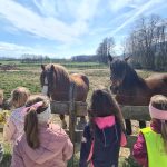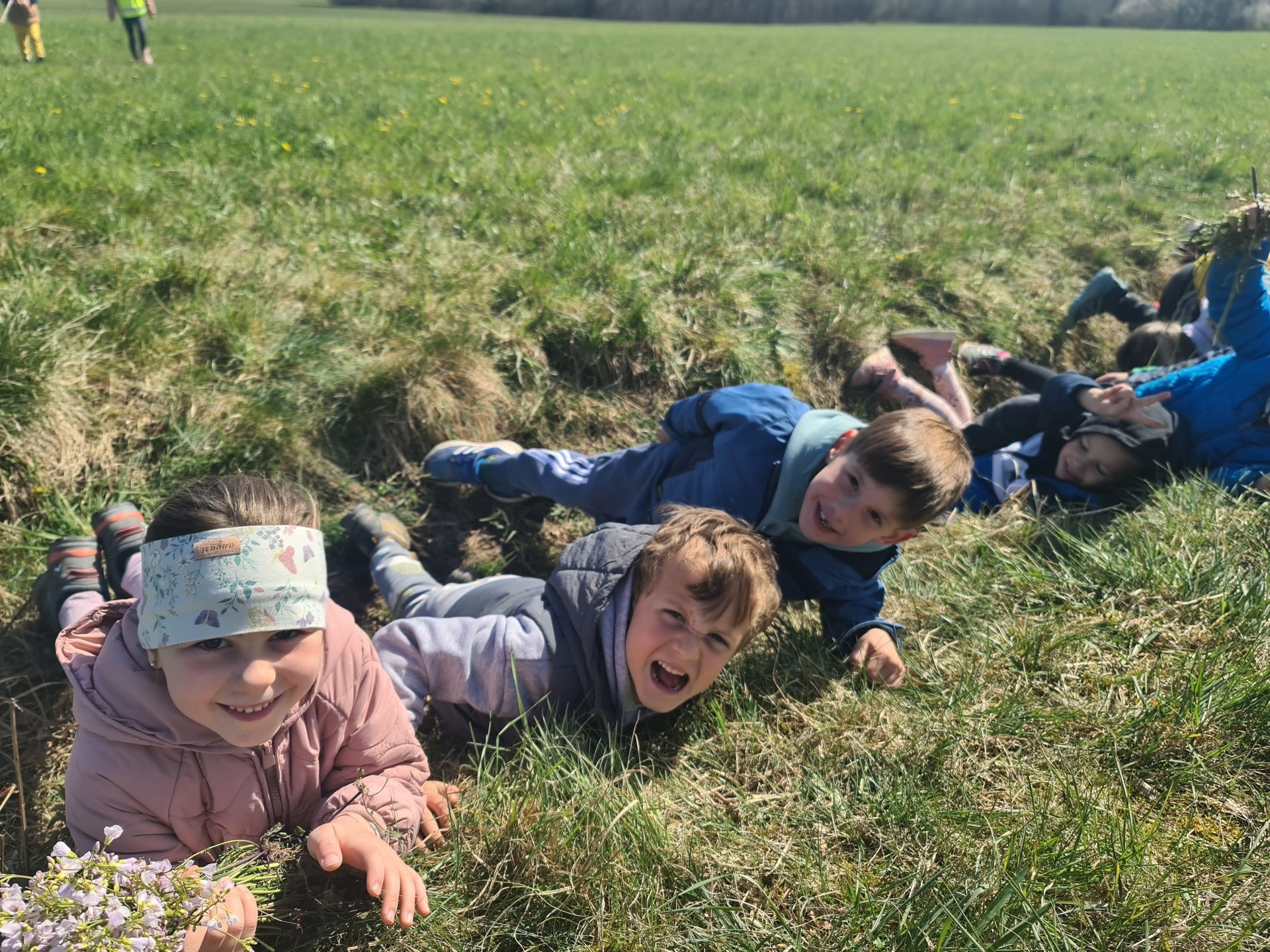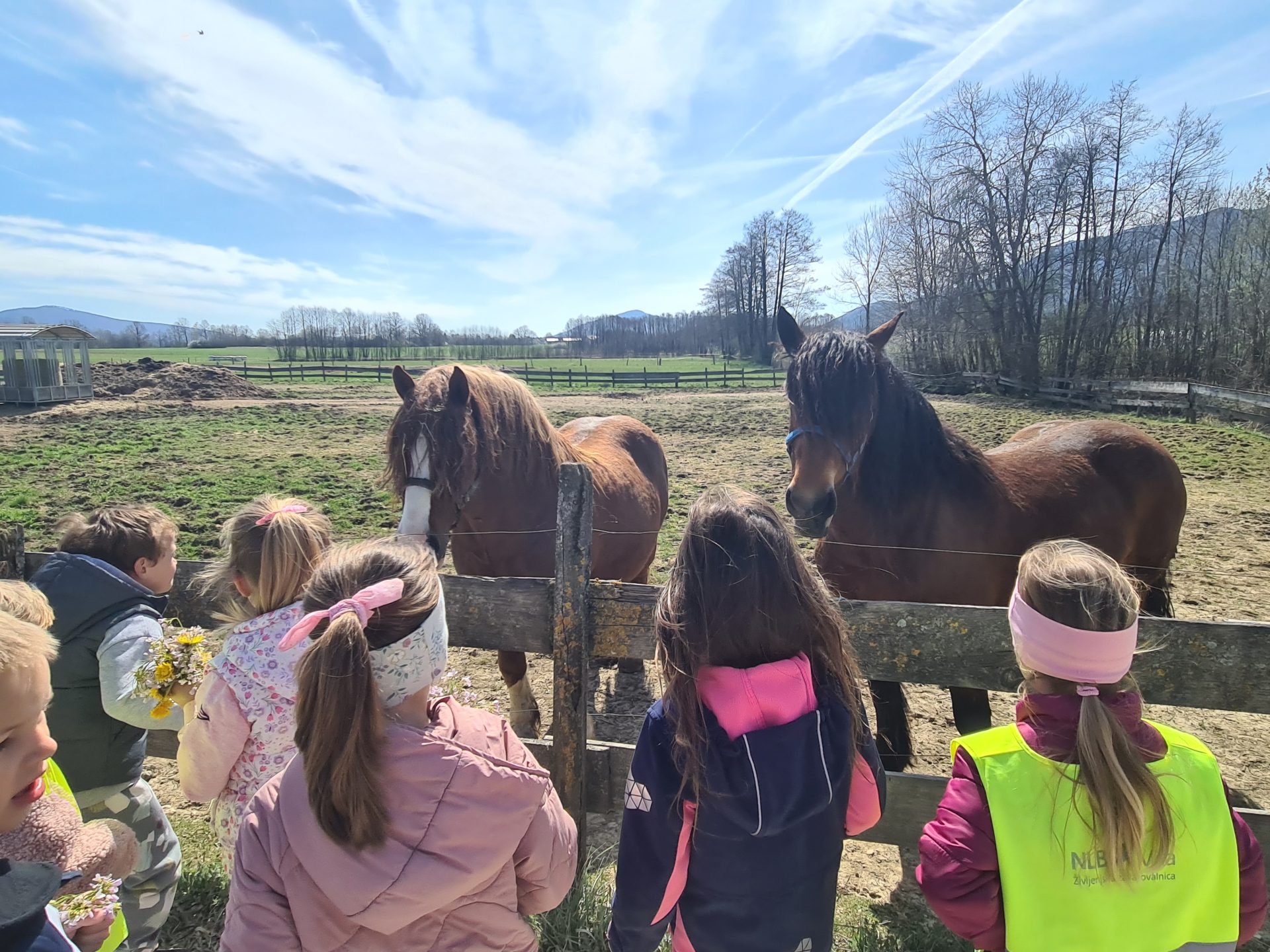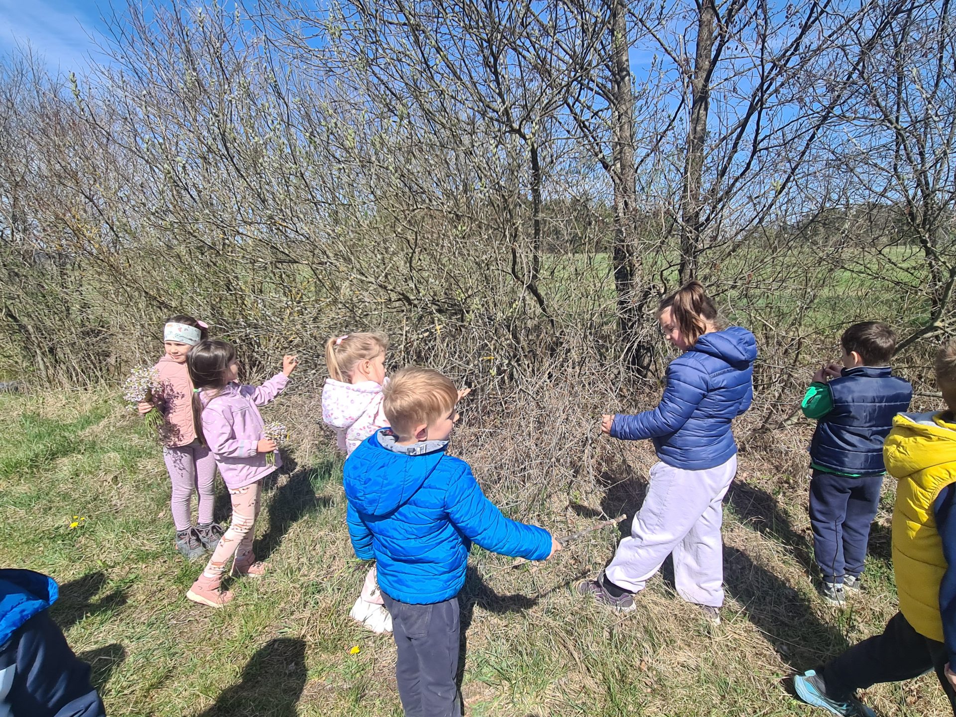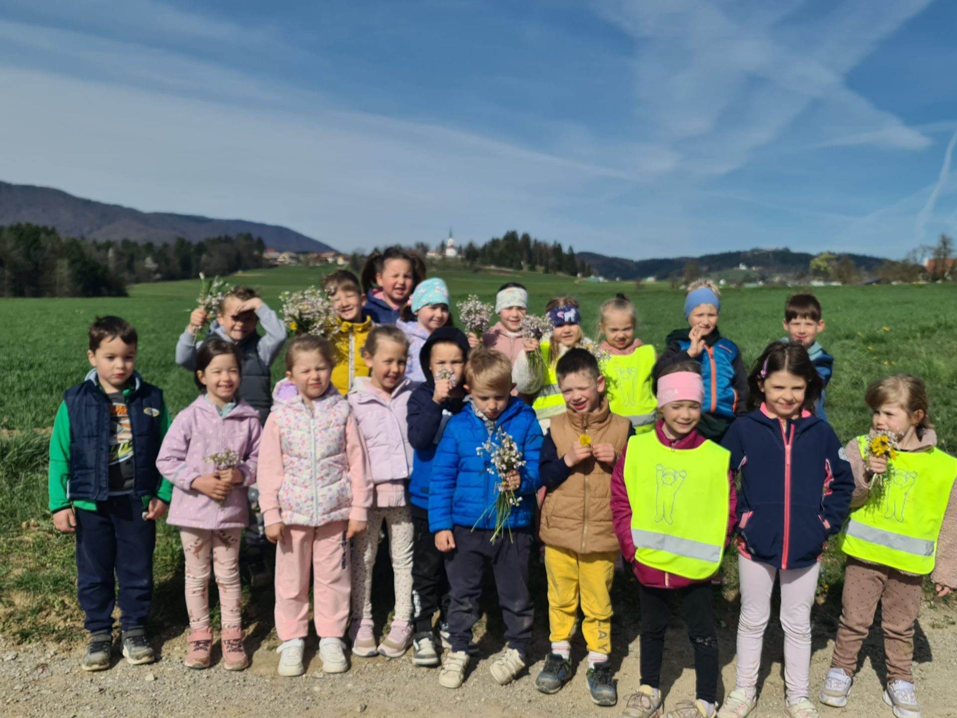 V skupini Veveričke smo se odpravili na spomladanski pohod. Takoj po zajtrku smo se odpravili na pot, najprej smo hodili ob cesti med hišami, potem pa nas je pot pripeljala do travnika. Na travniku so se otroci nekaj časa sproščeno igrali in se gibali. Otroci so opazili travniške rože, male živali in ptice. Preskakovali so jarke, premagovali naravne ovire, se igrali s palicami … Nato smo se v sproščenem vzdušju odpravili naprej in zavili proti mostu, kjer smo prečkali potoček. Ogledali smo si tudi konje, ki so bili otrokom še posebno zanimivi. Lačni in prijetno utrujeni smo se vrnili v vrtec, kjer nas je že čakalo kosilo. Preživeli smo lepo pomladansko dopoldne.