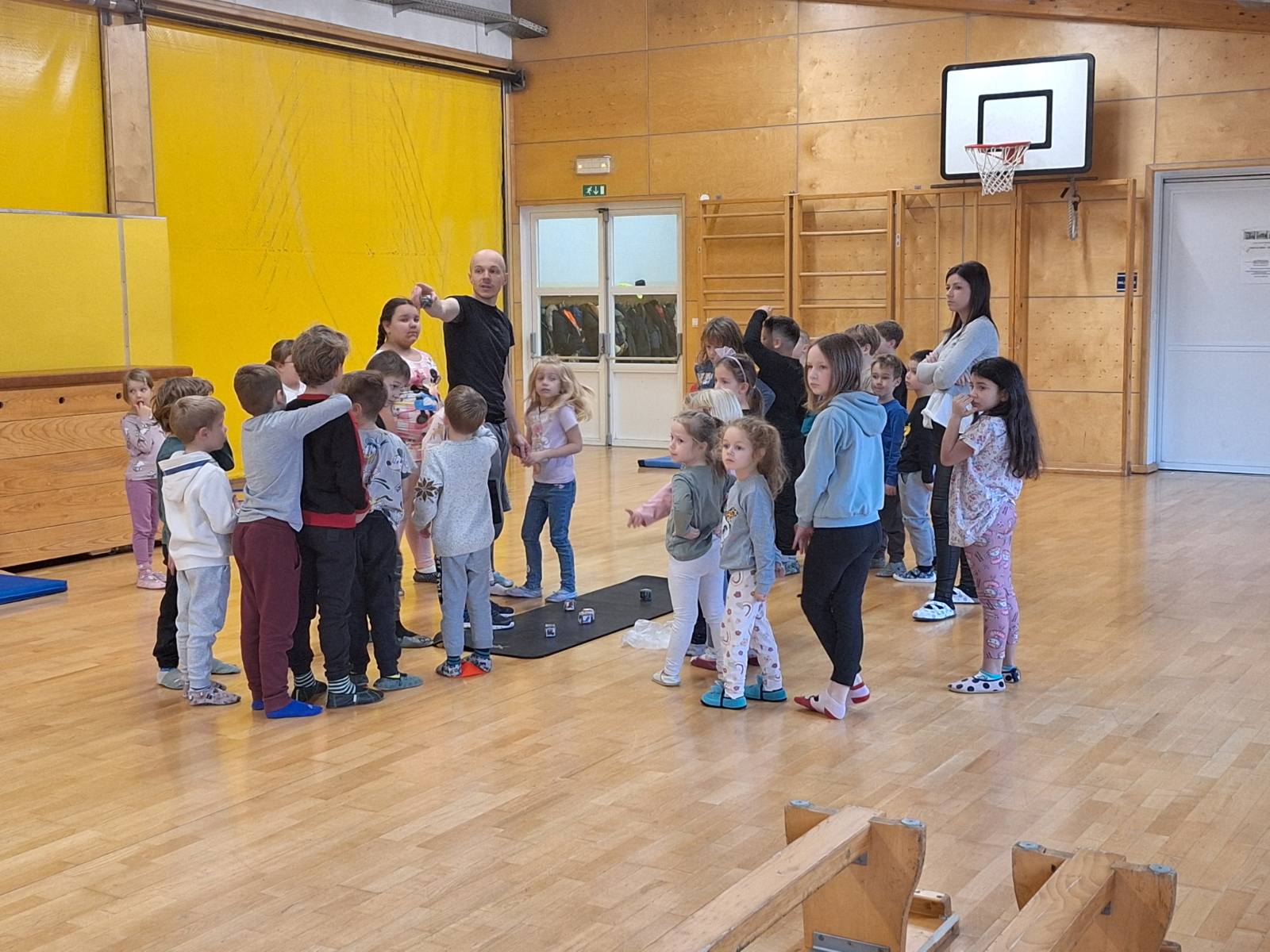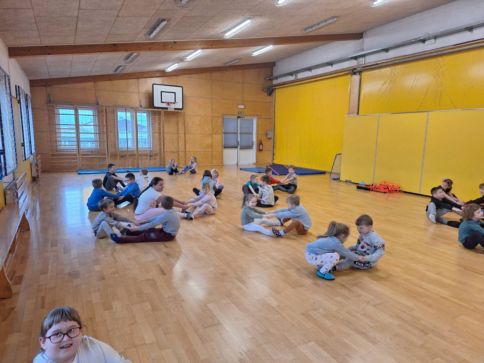 Dne 22. 1. so se Zajčki v sklopu sodelovanja s šolo prvič letos srečali z učenci 2. b razreda OŠ Ribnica. V telovadnici Športnega centra Ribnica smo se skozi zabavno ogrevalno tekalno igro in delo v parih hitro spoznali ter povezali. Mlajši in starejši otroci so odlično sodelovali, v gibalnih nalogah pa smo se prelevili v prave gozdne živali. Vesela, razigrana in polna gibanja je bila naša jutranja urica, po kateri so se Zajčki zadovoljni vrnili v vrtec, šolarji pa nazaj k pouku. Že zdaj se veselimo naslednjega druženja.